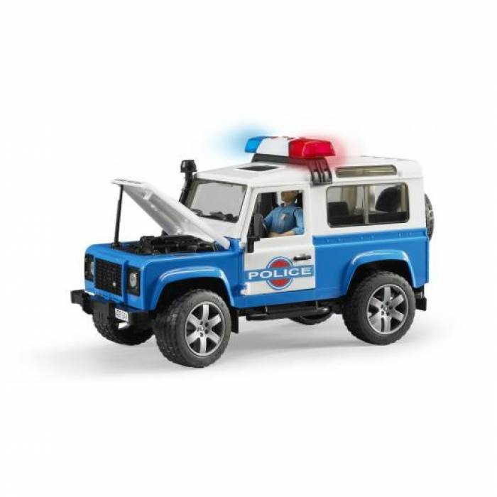 Ohromující off-road vlastnosti v kombinaci s nadčasovým designem Land Rover dělají tento vůz všestranným pohotovostním vozidlem. Policejní Land Rover má otevírací zadní dveře, boční dveře i kapotu motoru, kde je k nahlédnutí detailně propracovaný blok motoru. Zadní sedadla a tažné zařízení jsou odnímatelné. Odpružení obou náprav znamená, že pro toto auto nejsou žádné terénní limity. Pření náprava může být řízena volantem v kabině řidiče nebo pomocí prodlouženého volantu (prostřednictvím posuvné střechy stejně jako u traktorů Bruder).