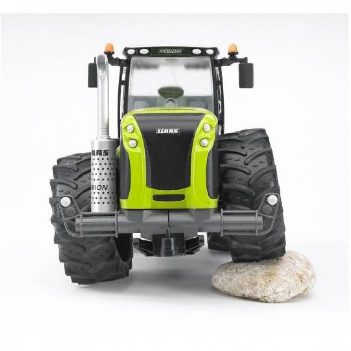 Odlišnost Claas Xerion 5000 je zřejmá na první pohled. Jeho síla se projevuje již při pohledu na kola, která jsou všechna stejně velká. I v tomto případě Bruder zůstává věrný svému mottu „stejně jako skutečná věc" a model má stejné funkce jako skutečná předloha. Mezi tyto funkce patří kola, která byla navržena tak, aby mohla být řízena prostřednictvím posuvné střechy (za použití prodlouženého volantu obj. č. 45003). Řízení volantem je možné i po otočení kabiny, spojení s nápravou se nepřeruší. Stejně jako u originálu lze řídit všechna čtyři kola najednou. Při normálním využtí jsou kola otočena v opačném směru k dosažení co nejmenšího poloměru otáčení. Samozřejmostí je také prosklená otvíratelná kabina nebo výškově nastavitelné tažné zařízení.